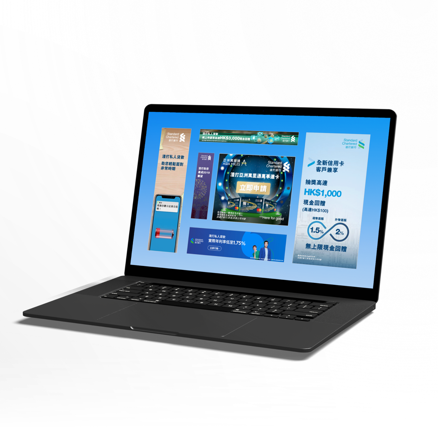 Based on the offer and different feature of different credit card or product in the promotion period. Helping Standard Chartered Hong Kong to develop several set of html5 banners to attract new members.